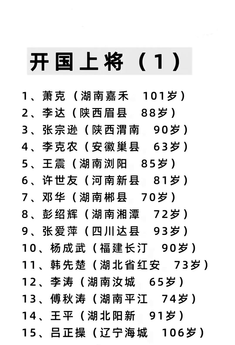 開國上將排名,歷史功勛與榮耀時刻,開國上將排名及功勛榮耀時刻回顧