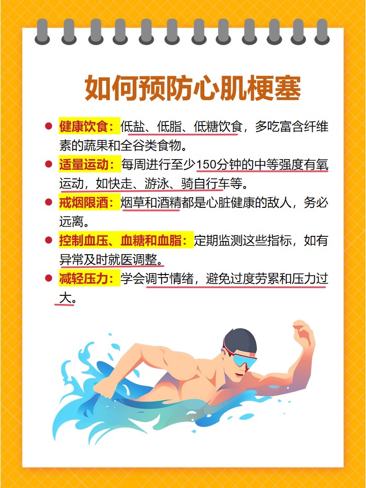 預防心肌梗塞的復發(fā)同樣重要,患者除了接受最佳治療方法外,還應注意以下幾點: